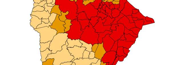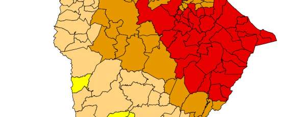 De acordo com o mapa mais recente da ferramenta de acompanhamento regular e periódico, o Estado chegou a apenas 4,81% do território classificado com seca fraca, que é o nível mais ameno. A área afetada concentra-se no centro do Sertão Central e Inhamuns.