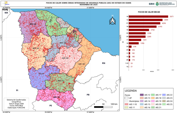 O ranking completo e os mapas interativos com a distribuição dos focos de calor podem ser consultados no site oficial da Funceme, na plataforma Focos de Calor, que reúne dados atualizados e detalhados sobre o tema.